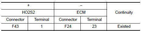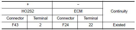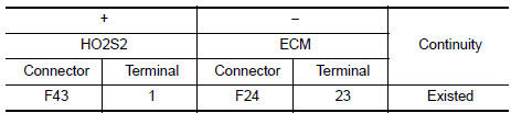 | P0138 | HO2S2 (B1) (O2 sensor circuit high voltage bank 1 sensor 2) | A) | An excessively high voltage from the sensor is sent to ECM. |