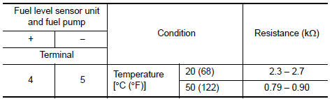 NO >> Replace “fuel level sensor unit and fuel pump”. Refer to FL-6, "Removal and Installation".