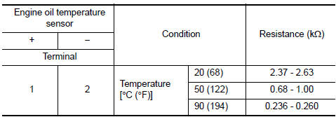 NO >> Replace engine oil temperature sensor. Refer to EM-94, "Exploded View".