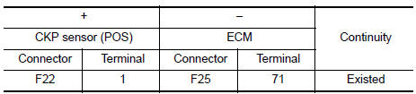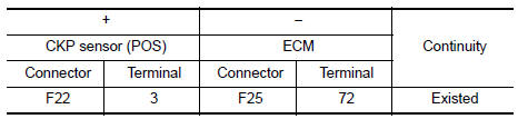 Check the resistance between crankshaft position sensor (POS) terminals as per the following.