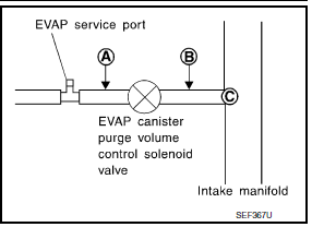 Check the EVAP canister purge volume control solenoid valve. Refer to EC-296, "Component Inspection".
