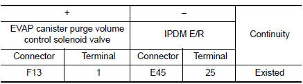 1.CHECK EVAP CANISTER PURGE VOLUME CONTROL SOLENOID VALVE POWER SUPPLY