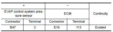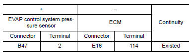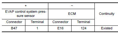 Check the continuity between EVAP control system pressure sensor harness connector and ECM harness connector.