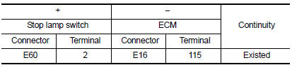 Check stop lamp switch. Refer to EC-412, "Component Inspection (Stop Lamp Switch)".