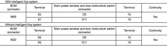 NO >> Replace main power window and door lock/unlock switch. Refer to PWC-70, "Removal and Installation".