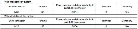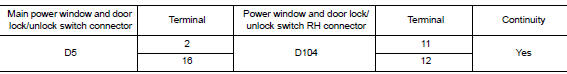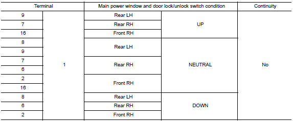 3. Check harness continuity (power window and door lock/unlock switch rh)