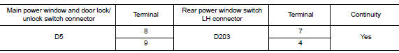 5. Check main power window and door lock/unlock switch output signal (rear power window switch lh)