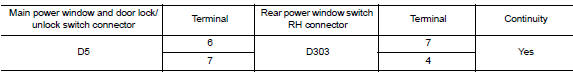 Yes >> check main power window and door lock/unlock switch output signal (rear power window switch rh) go to 6.