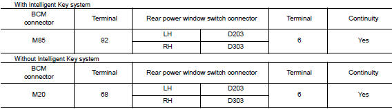 NO >> Replace rear power window switch. Refer to PWC-72, "Removal and Installation".