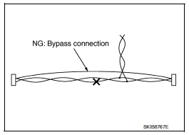 Bypass connection may cause can communication error. The spliced wire becomes separated and the characteristics of twisted line are lost.