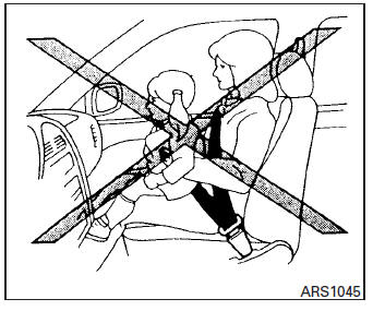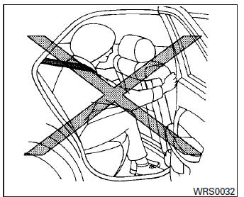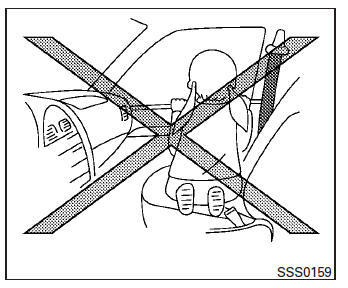 | WARNING Never let children ride unrestrained or extend their hands or face out of the window. Do not attempt to hold them in your lap or arms. Some examples of dangerous riding positions are shown in the illustrations. |