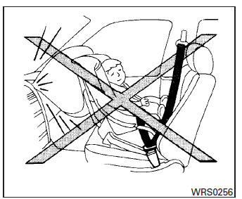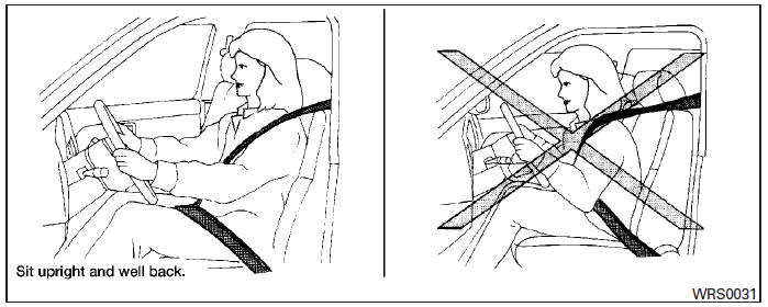 Even with NISSAN advanced air bags, seat belts should be correctly worn and the driver and passenger seated upright as far as practical away from the steering wheel or instrument panel. The front air bags inflate quickly in order to help protect the front occupants. Because of this, the force of the front air bag inflating can increase the risk of injury if the occupant is too close to, or is against, the front air bag module during inflation.