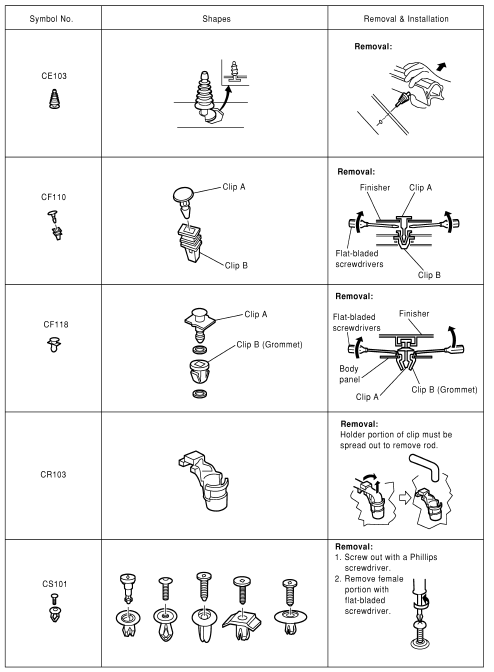 Replace any clips which are damaged during removal or installation.