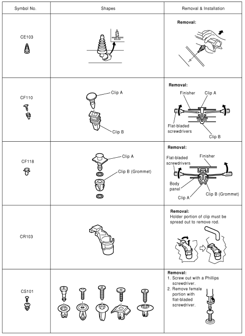 Replace any clips which are damaged during removal or installation.