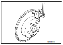 Check the thickness of the disc rotor using a micrometer. Replace the disc rotor if the thickness is below the minimum thickness.