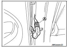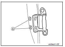 - Tighten the rear door hinge nuts (door side) (A) to specification.