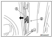 - Remove rear door assembly. Refer to DLK-315, "DOOR ASSEMBLY : Removal