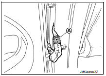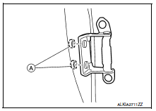 - Tighten the rear door hinge nuts (door side) (A) to specification.