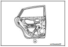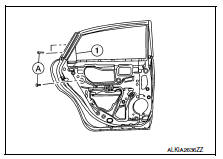 If the clearance between the glass and sash is not parallel, loosen the regulator mounting bolts, guide rail mounting bolts, and glass and carrier plate mounting bolts to correct the glass position.