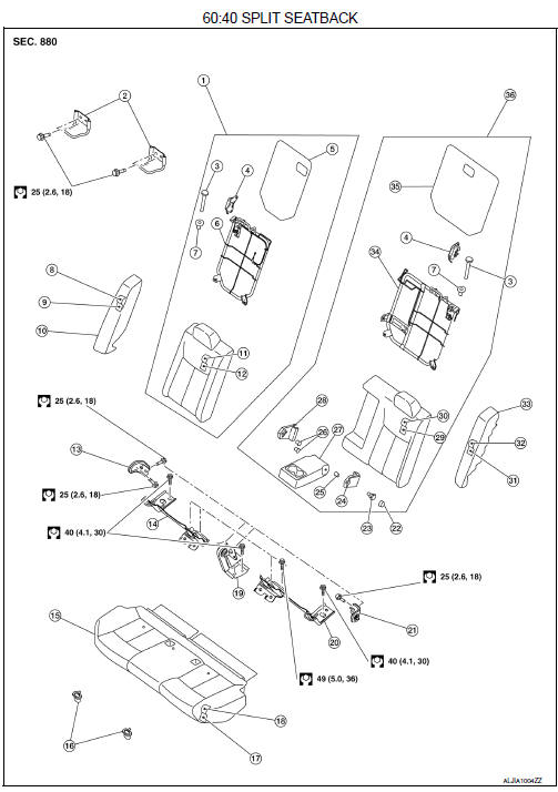 - Tighten the seatback hinge brackets to specification. Refer to SE-22,
