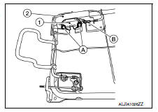 - Release cable end (B) from the seatback latch assembly (1),