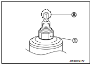 - Hold the tip (A) of the piston rod. Tighten the piston rod lock nut (1)