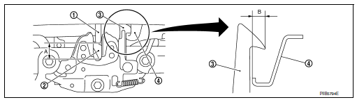 - Check hood hinge rotating part for poor lubrication. If necessary,