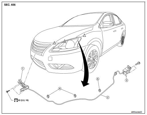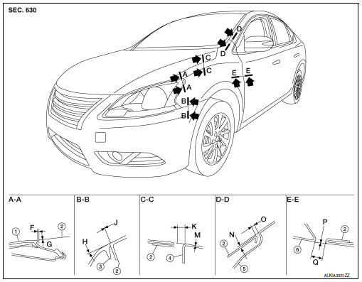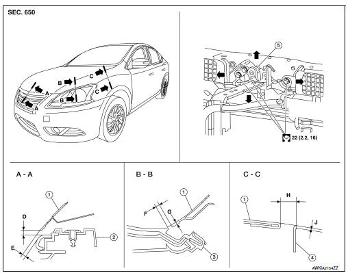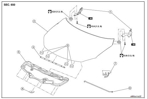 - Hood assembly: Refer to DLK-150, "HOOD ASSEMBLY : Adjustment".