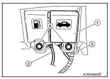- Remove hood hinge bolts (A) and hood hinge (1).