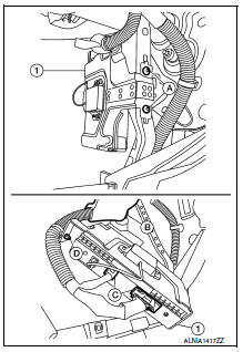- Remove the glove box assembly. Refer to IP-22, "Removal and Installation".