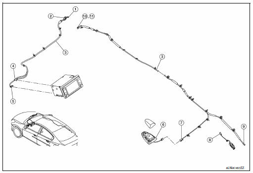 - Remove the satellite radio antenna nut (a).