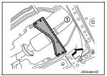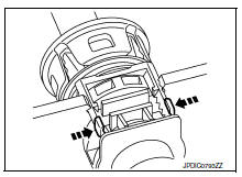 - Disengage the pawls (a) of the grommet (1), and pull downwards