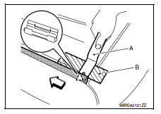Apply protective tape (B) on body to protect the painted surface from damage.