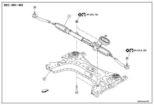 Do not reuse steering outer socket nut and steering gear assembly nut.