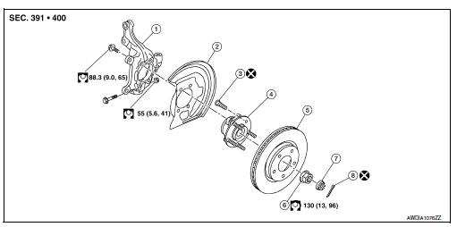 - Remove the wheel and tire using power tool. Refer to WT-47, "Exploded
