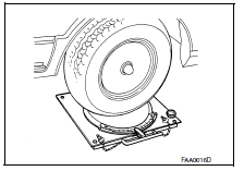 Place front wheels on turning radius gauges and rear wheels on stands, so that vehicle can be level.