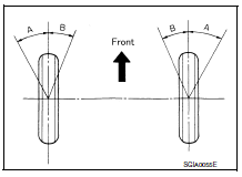 Outer wheel (Angle: B) : Refer to ST-18, "Steering Angle".