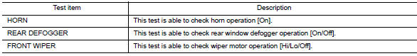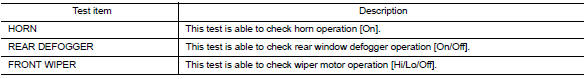 | Active Test | The IPDM E/R activates outputs to test components. |