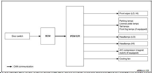 In auto active test, the IPDM E/R sends a drive signal to the following systems to check their operation.