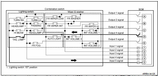- BCM detects the combination switch status signal “5D” when the signal of