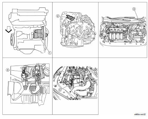 | Transmission range switch | Supplies power to the starter relay and starter control relay (inside IPDM E/R) when the selector lever is shifted into the P or N position. |