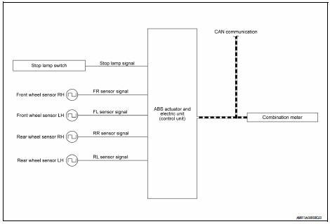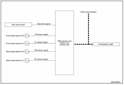 Receives the following signals from ABS actuator and electric unit (control unit) via CAN communication.