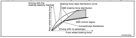 EBD function is expanded and developed from conventional ABS function and corrects rear wheel brake force to appropriate level by electronic control according to load weight (number of passengers).