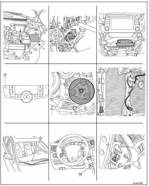 | Refrigerant pressure sensor | Refer to EC-29, "Refrigerant Pressure Sensor". |