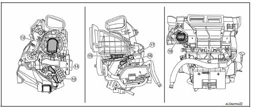 | Air mix door motor LH | The air mix door controls the mix of hot or cold air that enters the ventilation system. It is controlled by the A/C auto amp. based on the position of the temperature dial. The air mix door motor LH receives position commands from the A/C auto amp. |