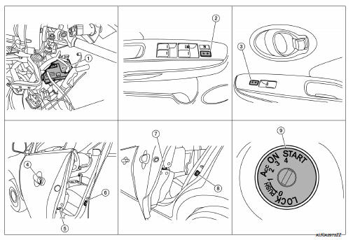 When all doors are locked, ignition switch is OFF and key switch is OFF (mechanical key is removed from the ignition cylinder), doors are unlocked with keyfob button. When BCM does not receive the following signals within 1 minute, all doors are locked