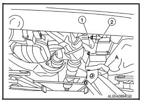 - Support engine (1) and transaxle (2) using suitable jack (A).