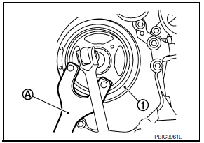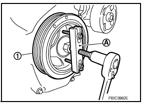 - Secure crankshaft pulley (1) using suitable tool (A).