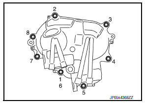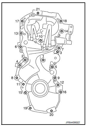 - Install front cover, and tighten bolts in numerical order as shown.
