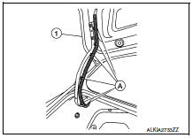 - Remove the bolts (A) and remove the trunk lid assembly (1).